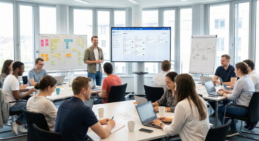 Die leistungsstärkste Software entfaltet ihr Potenzial erst, wenn sie von Menschen sicher bedient wird. Oft scheitern Atlassian-Einführungen nicht an der Technik, sondern an fehlender Akzeptanz: Mitarbeiter fühlen sich von Jira-Workflows überfordert, nutzen Confluence nicht strukturiert oder umgehen die Tools komplett.